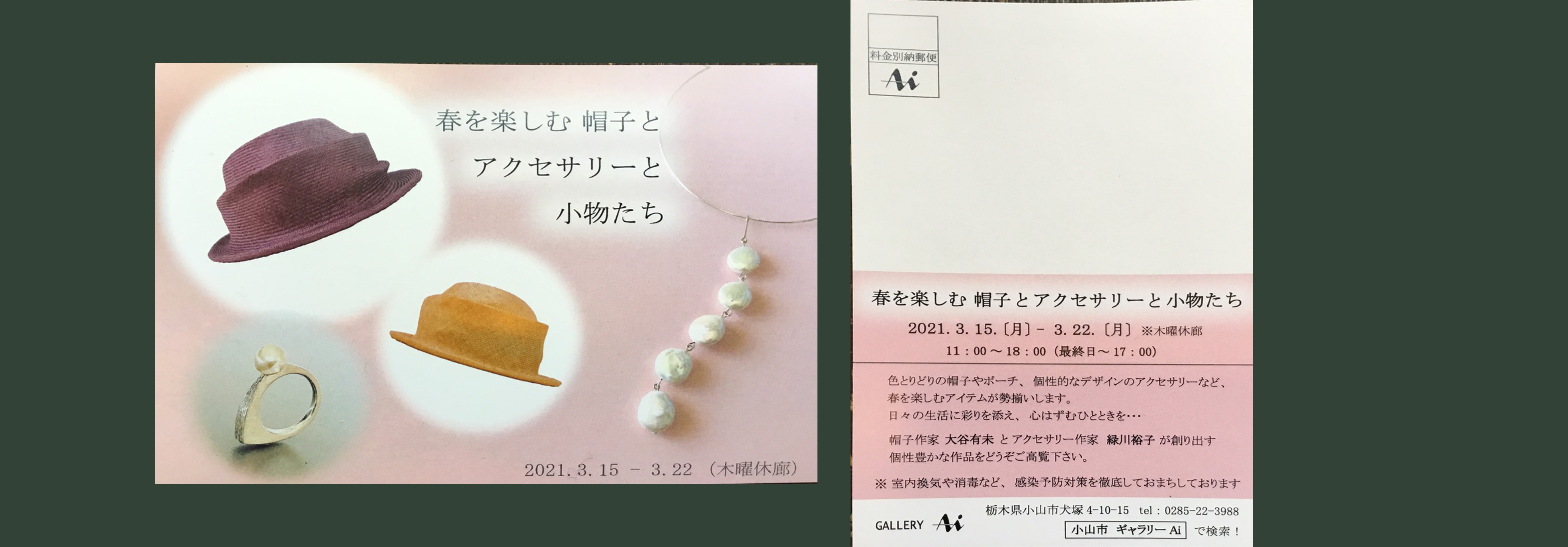 3月15日(月)~3月22日(月) 帽子作家 大谷有未 アクセサリー作家 緑川裕子
