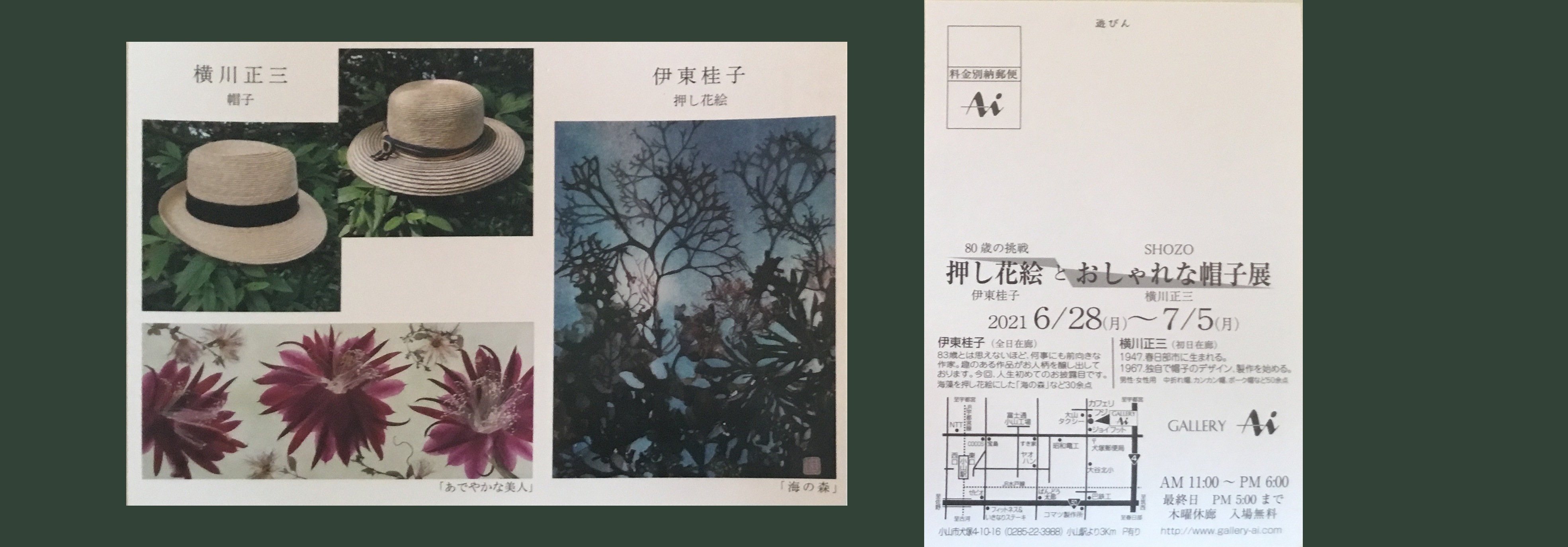 「伊東桂子 押し花」と「横川正三 おしゃれな帽子展」