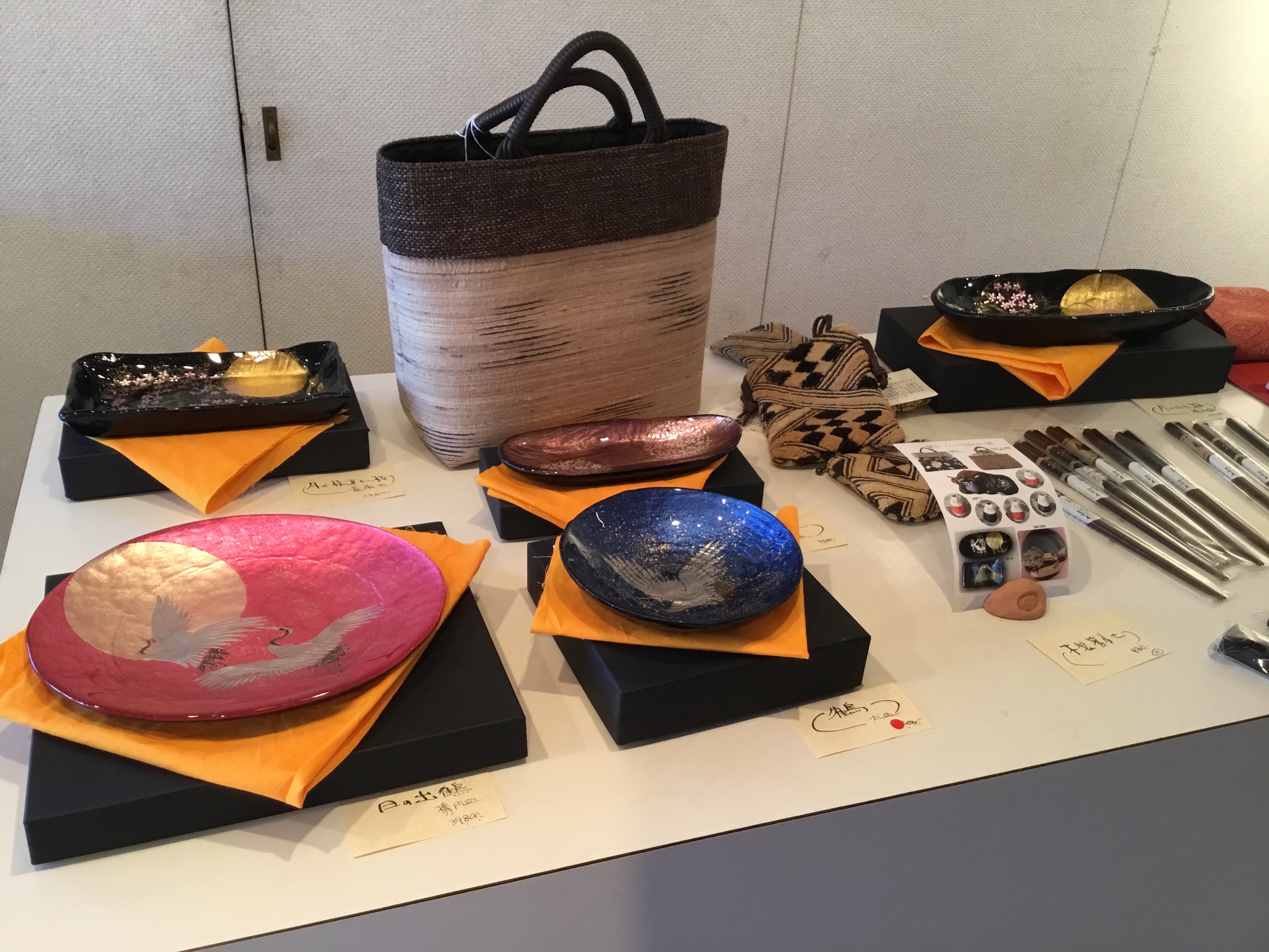 橋本廣司/伝統三春人形・中村光彩/会津漆器・漆がけガラス・(株)凜 武藤達也/バッグ・スカーフ